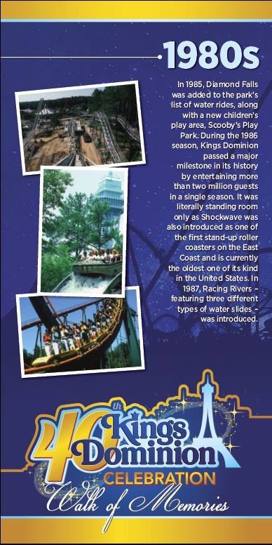 Do you have any photos of the park during its “golden years?” The park is asking for people to send in photos to social@kingsdominion.com so that your photo can be displayed in an in-park mosaic!