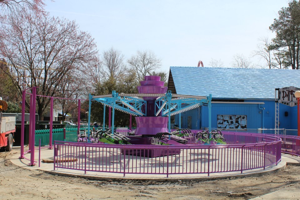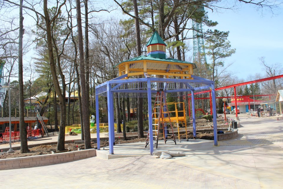 King Dominion posted a construction update for Planet Snoopy on their facebook page yesterday. From the looks of the update, four more of the new rides have been installed since the last update. Progress along the main pathway is coming together nicely and shops are starting to take shape also. The park opens in only 12 days and it looks like there is still a lot of work to do before they open.