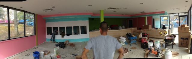 Panorama of the inside. You can see where the yogurt dispensers will be.