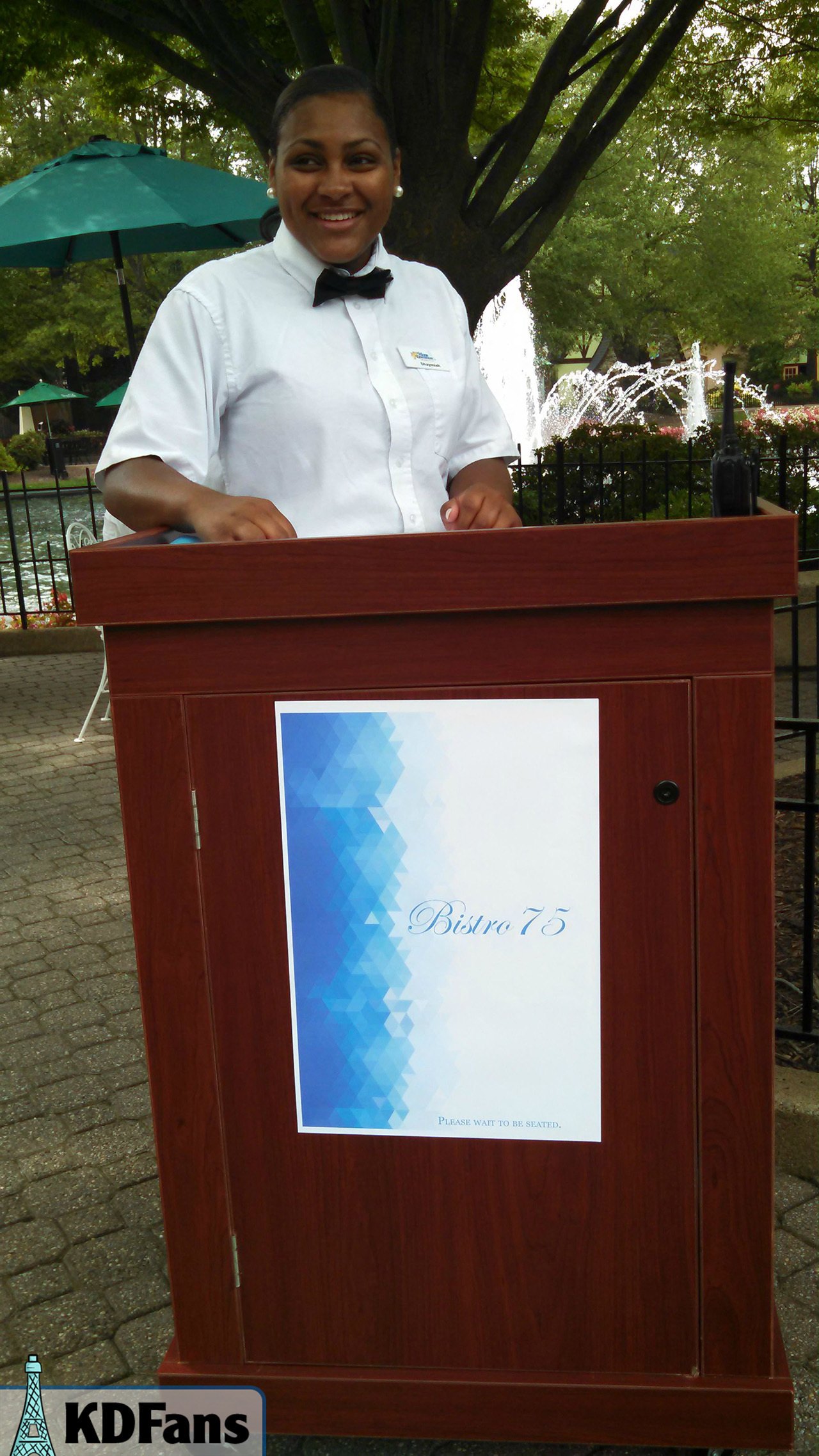 I was fortunate enough to visit on Bistro 75’s very first day in business; in fact, my group was the very first to eat at the new restaurant. We stopped by sometime around three o’clock to see this peculiar new restaurant (nobody knew it existed until then), with a cluster of six or so tables along with fountains, as well as other restaurant-y things. There was a hostess at a podium by the entrance to the area, who was taking reservations. We were the first ones to make a dinner reservation.