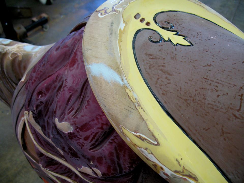 Naylor Finishes is the local Richmond company helping restore the Carousel which first began operation in 1917. The carousel has 66 horses and 2 cherub chariots. This season marks the second season in the multi-year renovation project to repaint and repair all of these horses. I suggest looking through their Facebook album to read more about what took place during the restoration of Ruby.