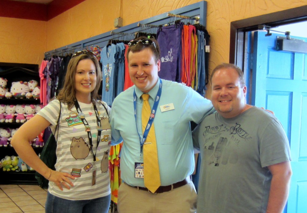 I was lucky enough to meet the Merchandising Department Manager, Derek, who was responsible for the pin program. I was just heading out to hunt down the first employee I saw in order to trade them for the coveted “Singing Mushroom Pin.” Of all the people in the park, it had to be destiny to be the first person to trade pins directly with the person who created the program! He was so enthusiastic about the merchandise, the park, and in meeting us.