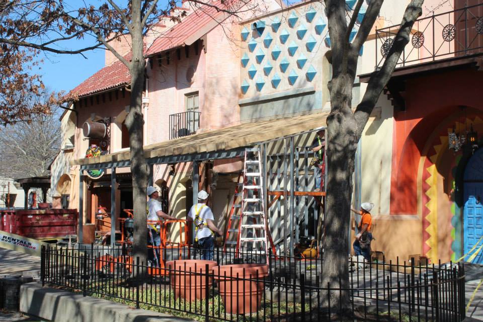 Lots of work has been going on around the front of the park. Below we see a lot of new paint as well as construction for the new Fountains and Floats restaurant as well as work on the new fountain setup!