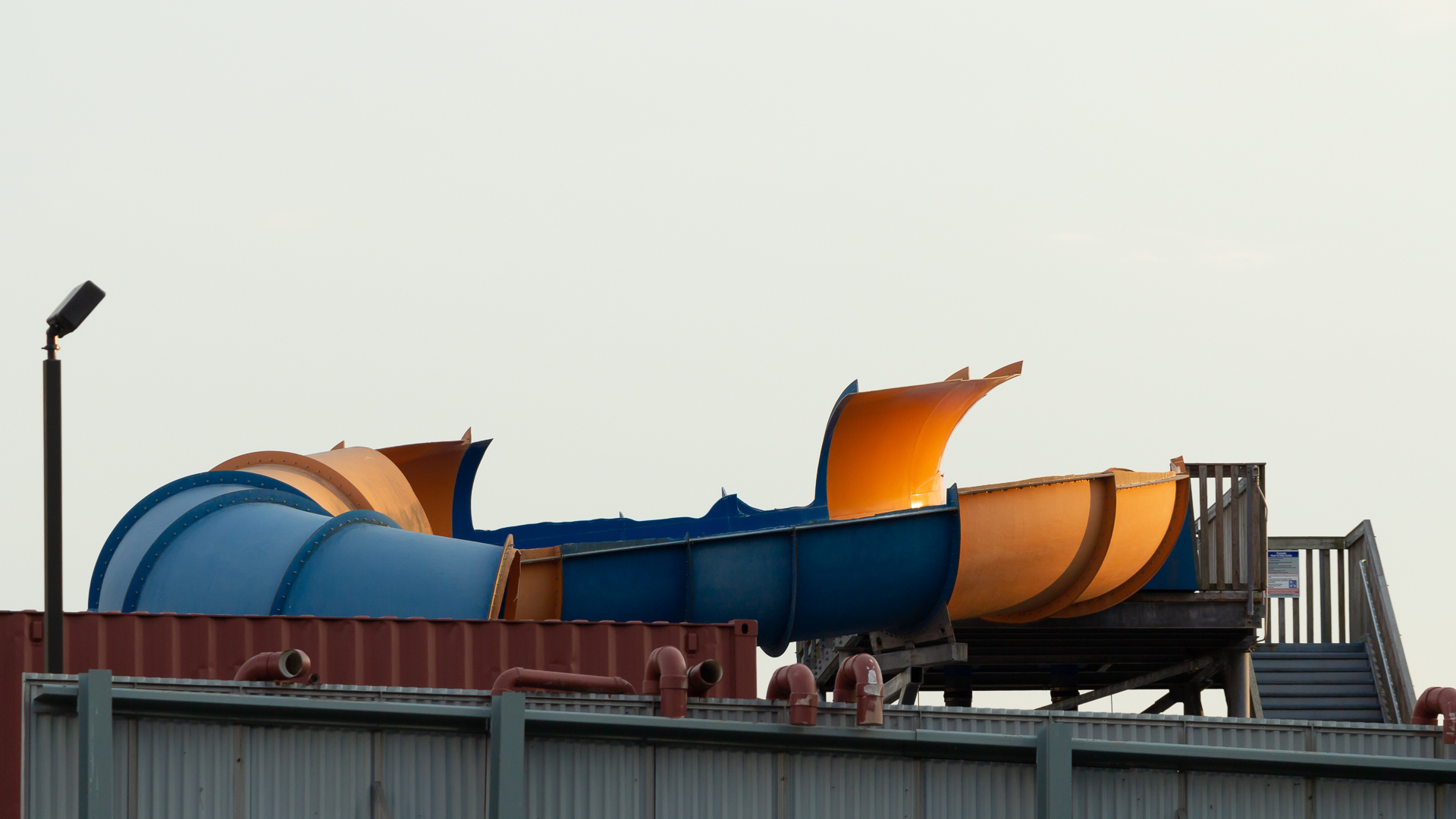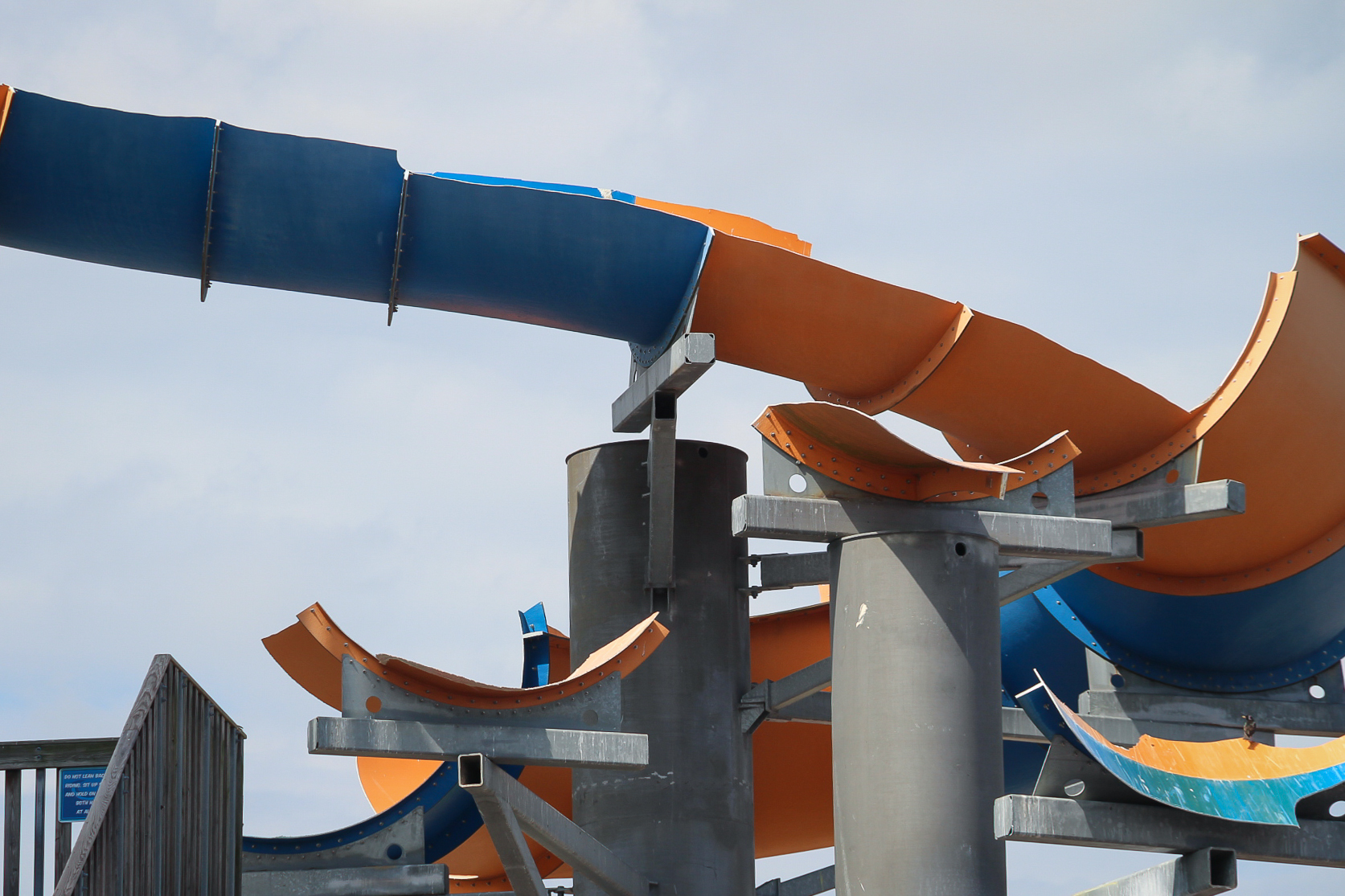 Below you’ll find news and photos of the ongoing removal of Tornado from Soak City; a construction update on the new WinterFest warehouse; and some (bad) news about Volcano’s status alongside some interesting new photos. Enjoy!