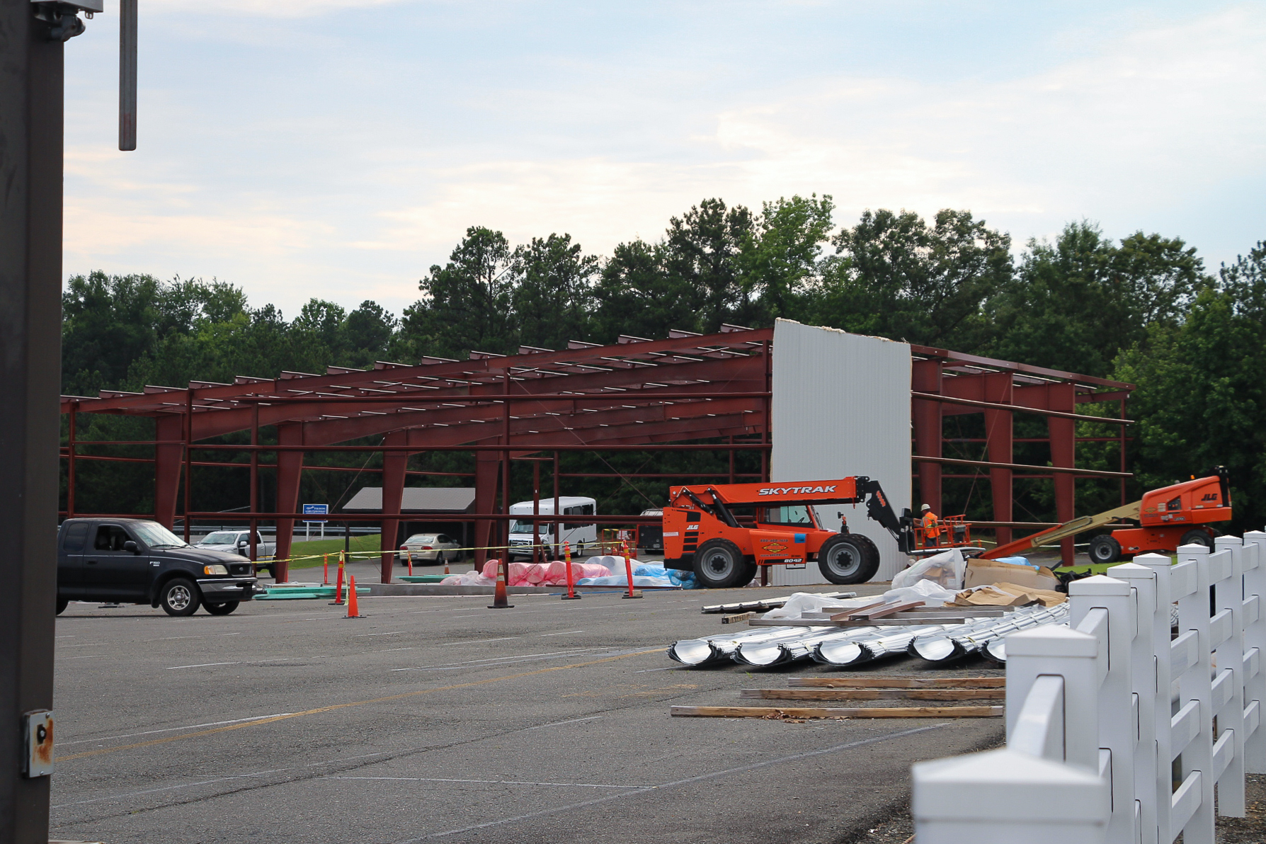One such example is the large, new warehouse, currently being built on what is currently the back of Kings Dominion’s employee parking lot. This structure will be able to store decorations and other dedicated event items throughout the year. A map of the area in question is included below followed by a photo of the current construction progress as of Wednesday.