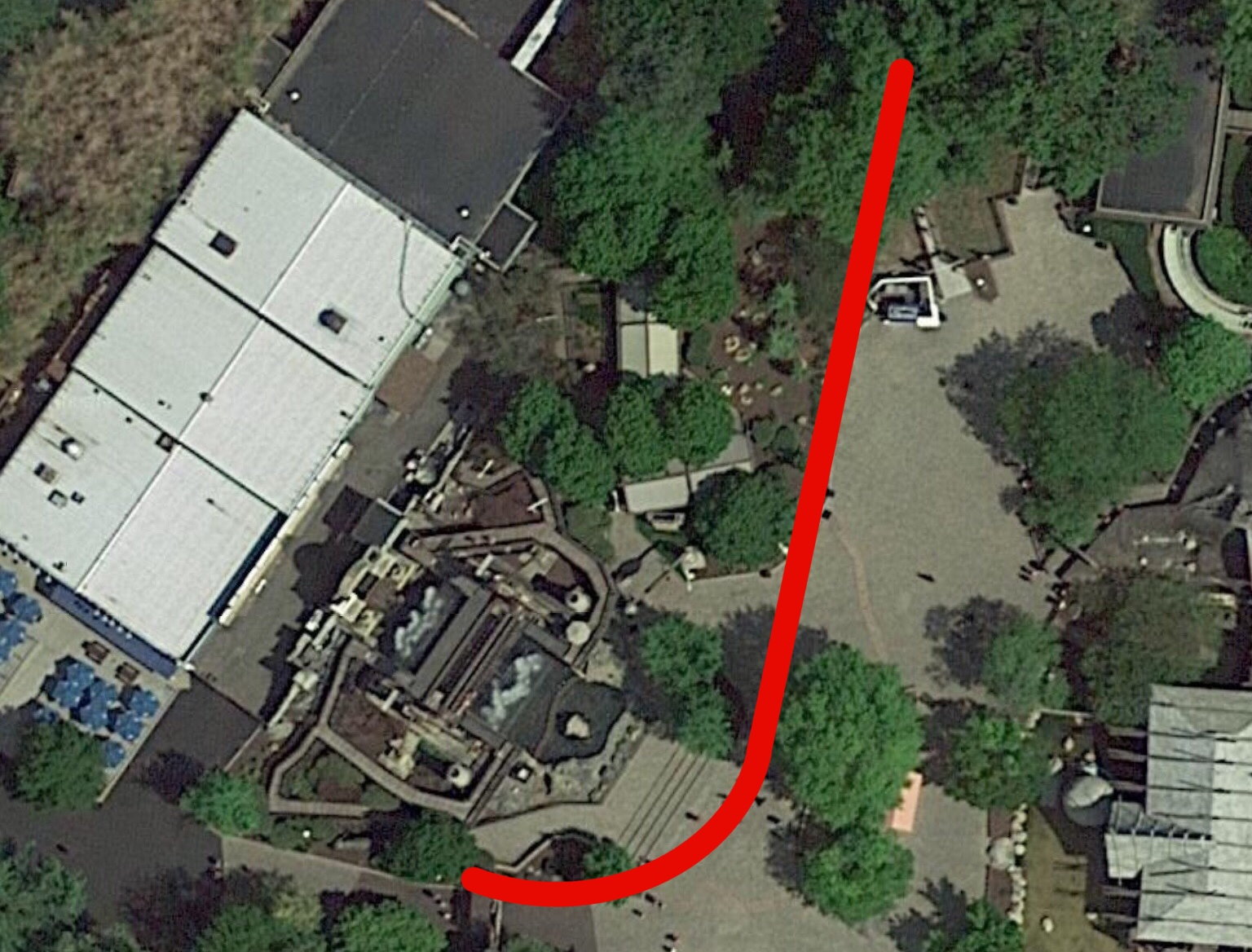 Secondly, the wooden construction fence and the cleared area seem to extend well past the former Crypt ride site—reaching back towards Avalanche’s queue entrance. Though this map is in no way exact, I’ve included a rough estimate of the location of the visible construction fence below.